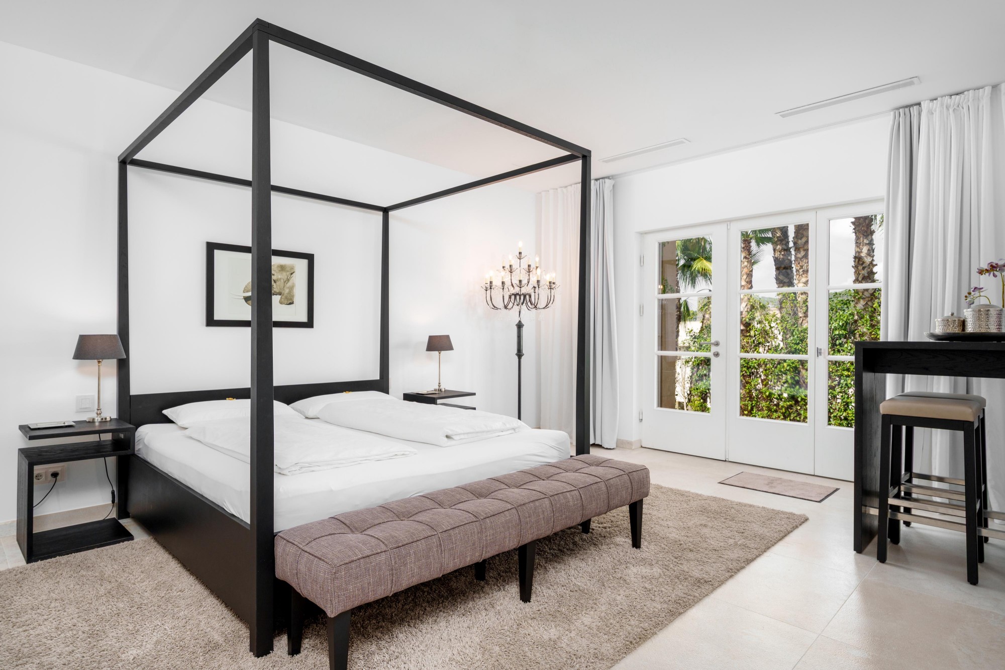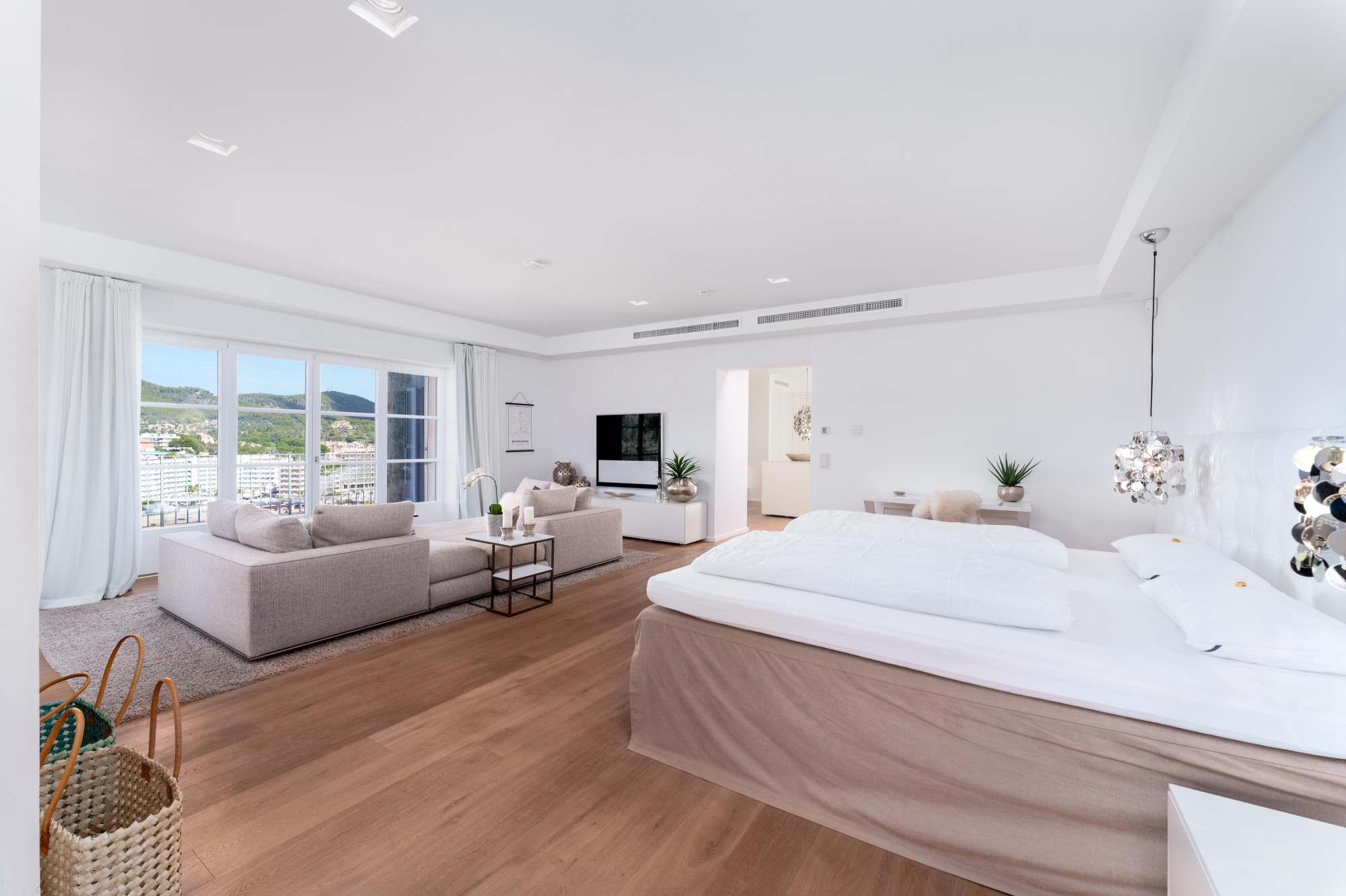 Four bedrooms, four en-suite bathrooms, each room with satellite TV. The centrally controlled air conditioning and underfloor heating create your personal feel-good climate, controlled via the intelligent KNX system, which also adjusts the lighting and ambience at the touch of a finger.