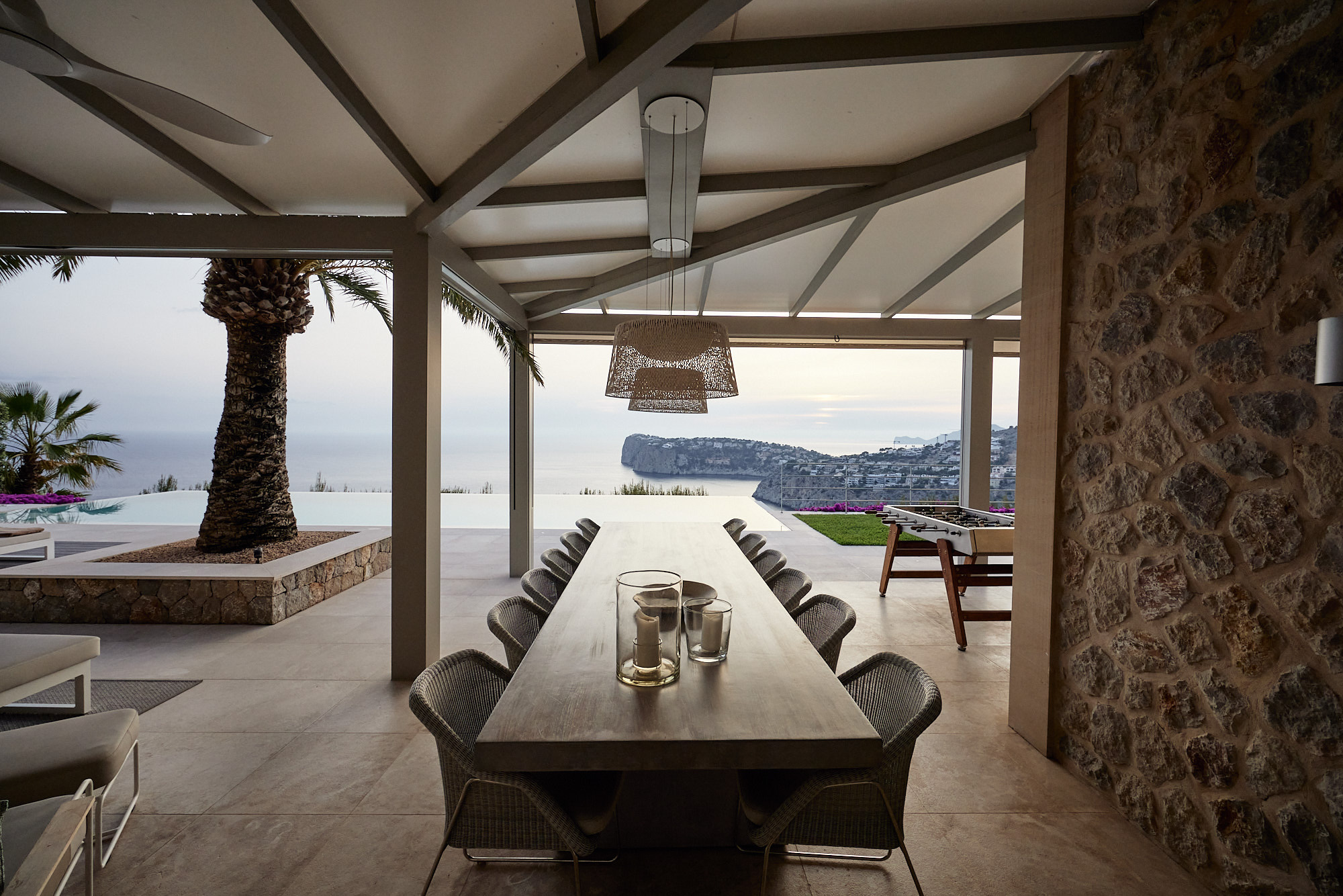 Hier spielt sich das Leben ab. Der beheizte 15 x 5 m Infinity-Pool scheint direkt mit dem Meer zu verschmelzen. Beweglichen Sonnensegel spenden Schatten, wann immer Sie ihn brauchen. Und wenn die Sonne langsam hinter der Insel Sa Dragonera versinkt – an klaren Tagen reicht der Blick bis nach Ibiza – verstehen Sie, warum dieser Ort so heißt, wie er heißt.