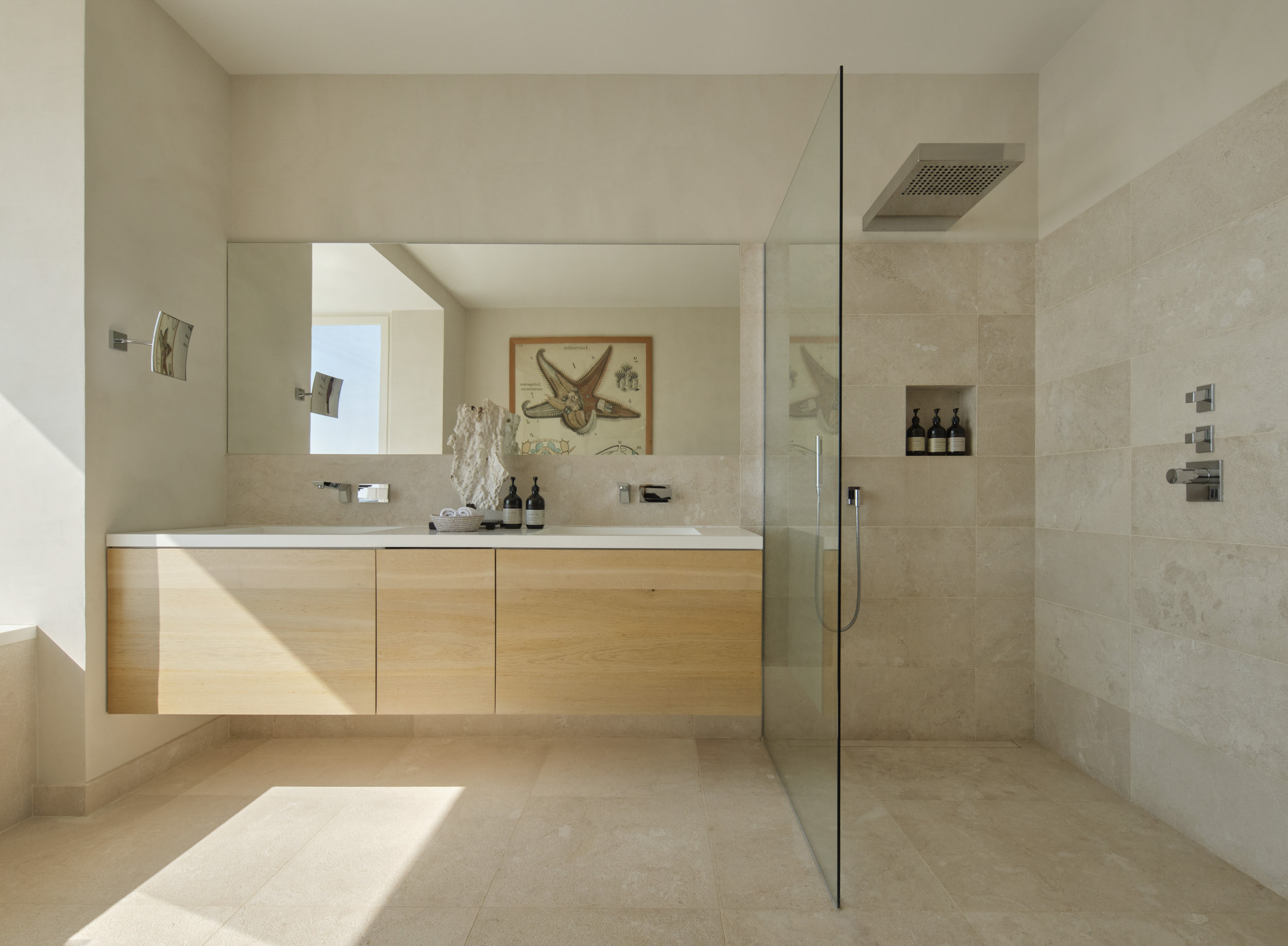 Beim Betreten der 875 m² spüren Sie sofort die mediterrane Essenz der Insel. Bodentiefe Glasfronten öffnen jeden Raum zum Meer hin, klare Linien und edle Materialien schaffen eine Leichtigkeit, die den Blick nicht ablenkt, sondern führt. Hinaus, ins Weite, ins Unendliche. Der großzügige Wohnbereich mit offener Gaggenau-Designerküche, der elegante Essbereich und die lichtdurchfluteten Living Spaces gehen nahtlos ineinander über und führen direkt auf die weitläufige Hauptterrasse.